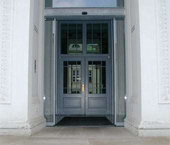 Staatskanzlei Schwerin Sitz des Ministerpräsidenten von MV Haupteingang als Personenschleuse --- Schiebetüranlage in Kombination mit Unterflurantrieb TORMAX TN 2 flg. an einer Sicherheitstür mehr >>> |