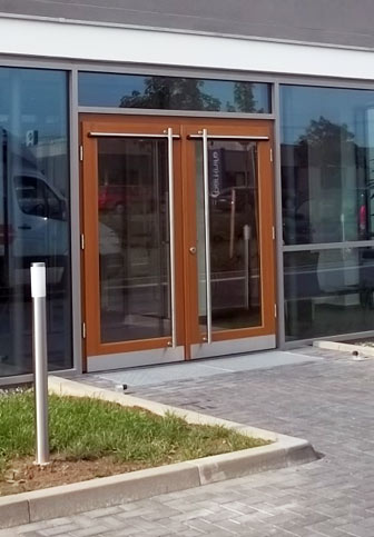Drehtürantrieb zweifl. Tormax TDA in Kombination mit der Motorschlosssteuerung Dorma