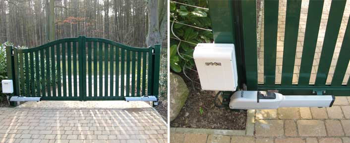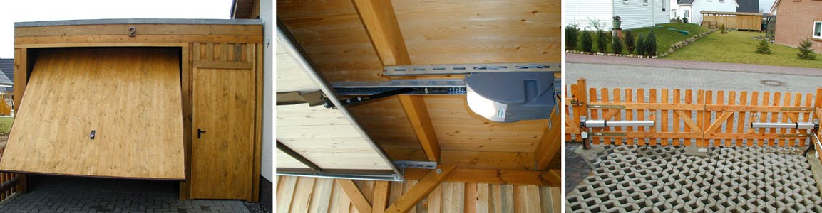 Hörmann Kipptor für bauseitige Belastung mit Garagentorantrieb Bernal | Gartentor mit Drehtorantrieb Faac 402 an bauseitigem Holztor