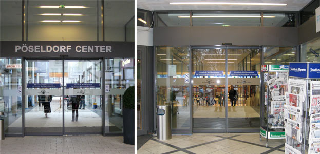 Schiebetüranlage in Kombination mit Unterflurantrieb TORMAX TN 2 flg. an einer Sicherheitstür